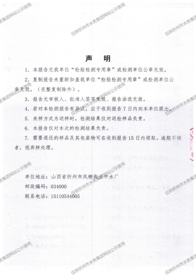 忻州城區(qū)公共供水水源水、出廠水、管網(wǎng)水、管網(wǎng)末梢水2025年5月份水質信息公示