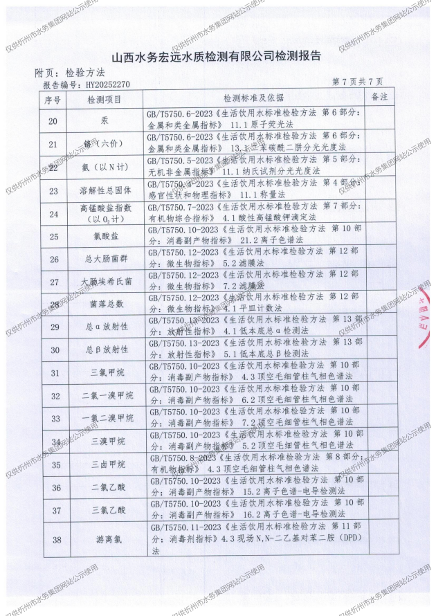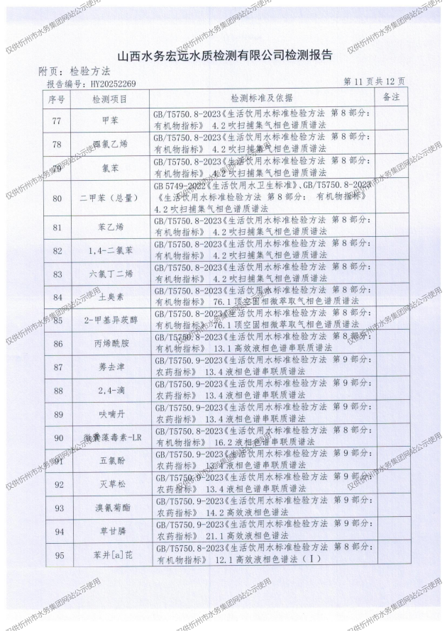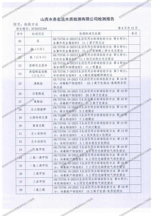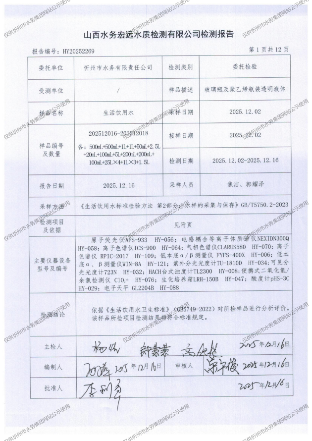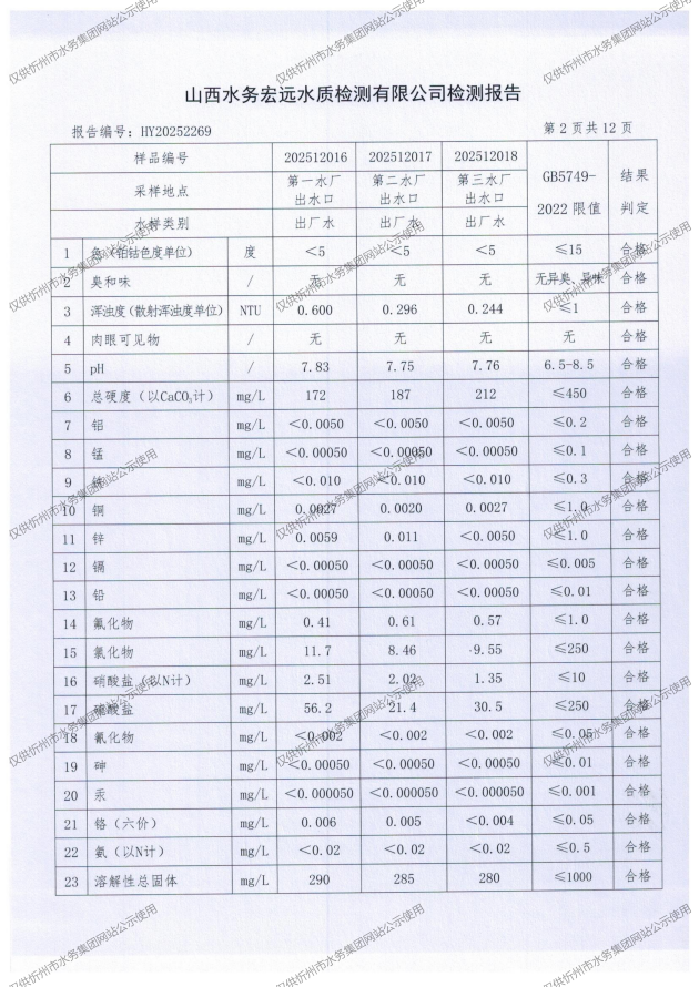 忻州城區(qū)公共供水水源水、出廠水、管網(wǎng)水、管網(wǎng)末梢水2025年12月份水質(zhì)信息公示