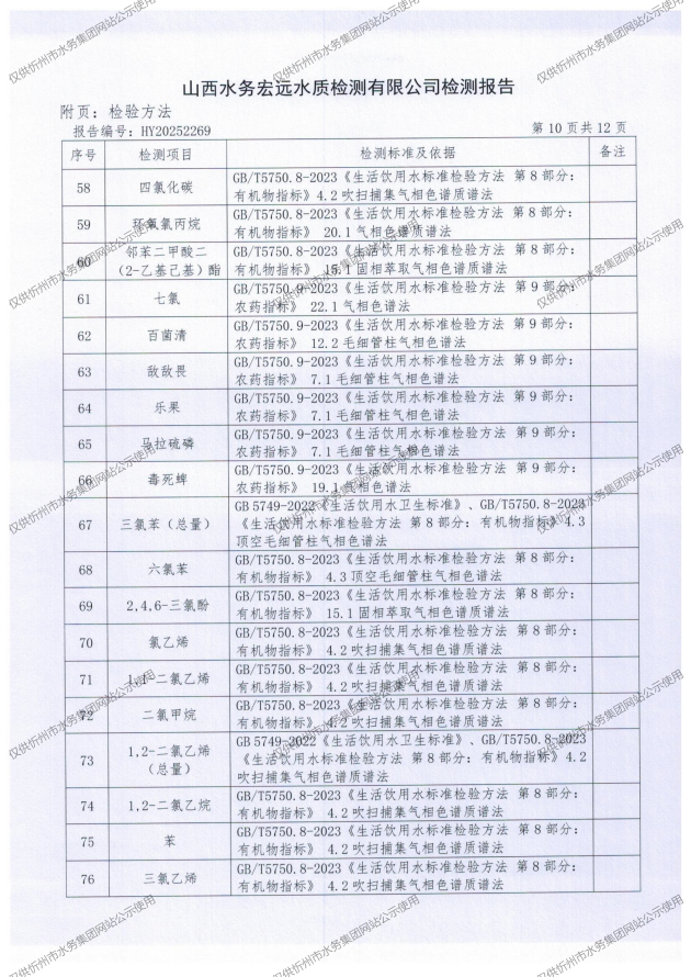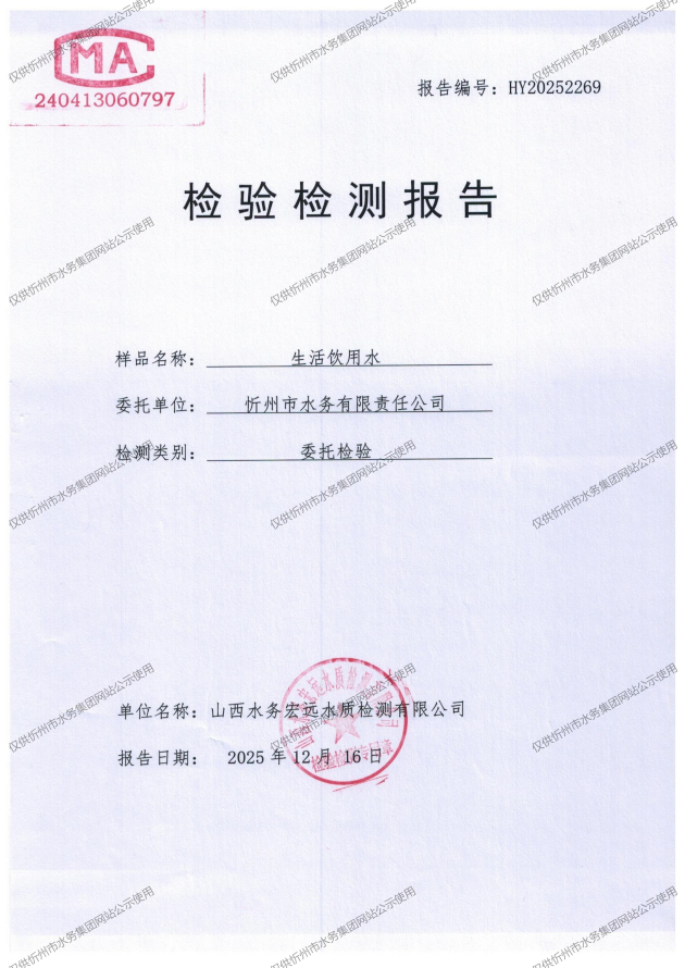 2025年忻州城區(qū)公共供水南水廠、三水廠、云中水廠出廠水97項(xiàng)水質(zhì)全分析