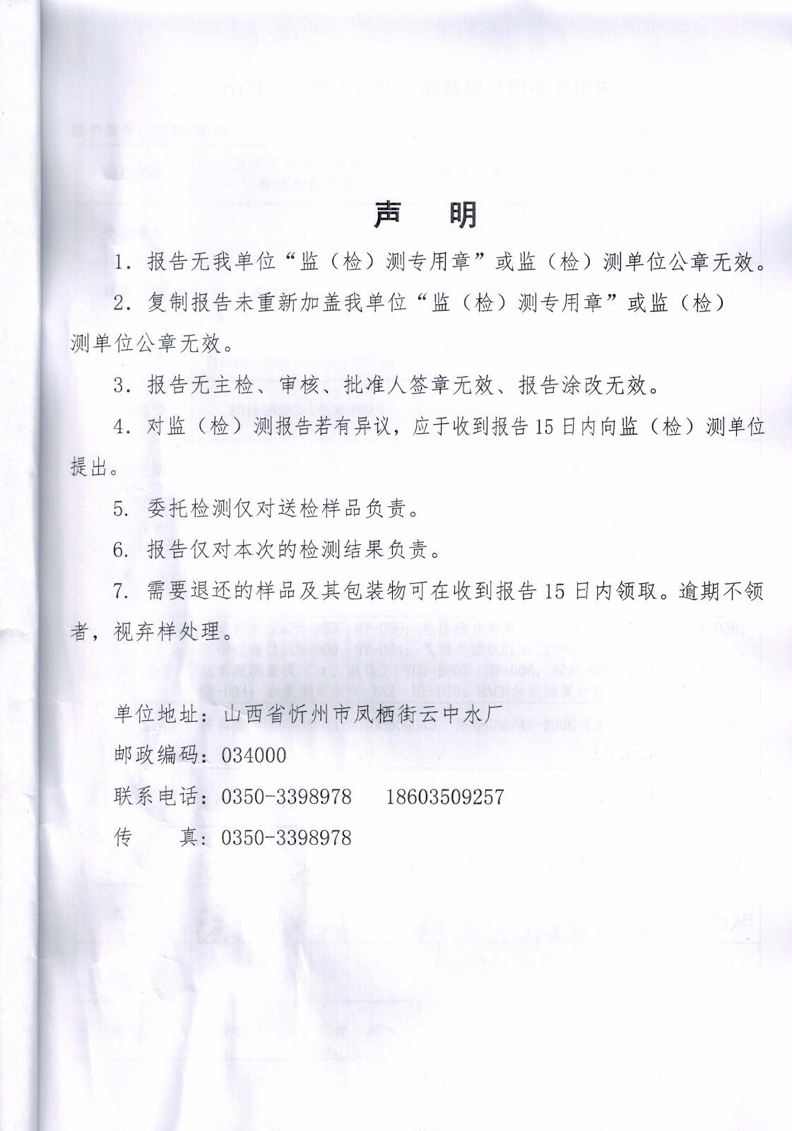 忻州城區(qū)公共供水水源水、出廠水、管網(wǎng)水、管網(wǎng)末梢水2018年6月份水質(zhì)信息公示