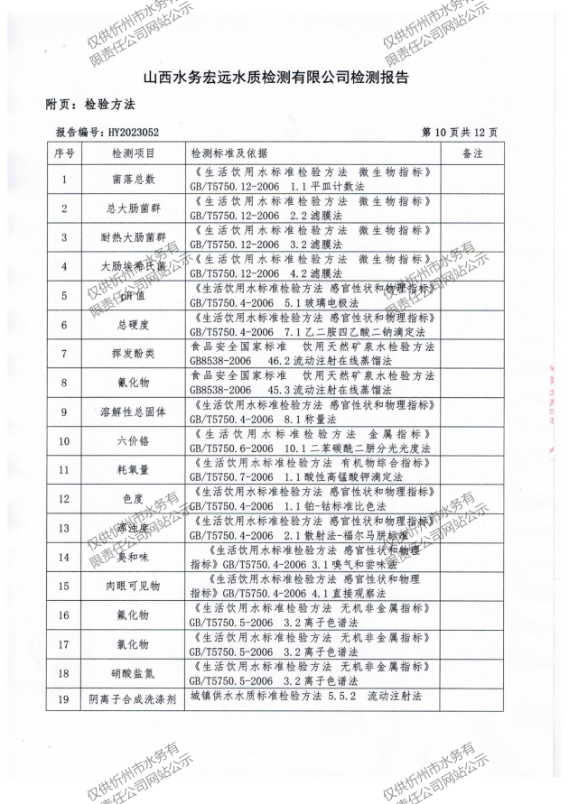 忻州城區(qū)公共供水水源水、出廠水、管網(wǎng)水、管網(wǎng)末梢水2023年3月份水質信息公示