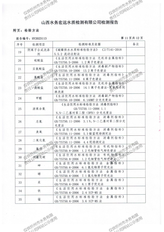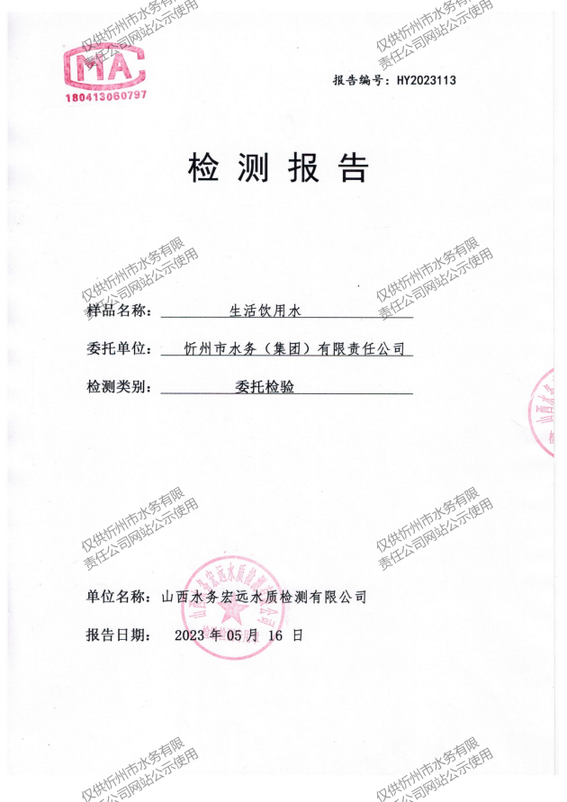 忻州城區(qū)公共供水水源水、出廠水、管網(wǎng)水、管網(wǎng)末梢水2023年5月份水質(zhì)信息公示